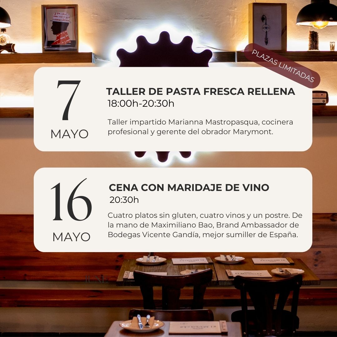 El taller se llevará a cabo el martes 7 de mayo de 18:00h a 20:30h en nuestro restaurante, ubicado en la C/Campoamor 42 en Valencia. Las plazas son limitadas, así que asegúrate de reservar la tuya cuanto antes en el apartado de eventos de nuestra web. Haz click aquí.